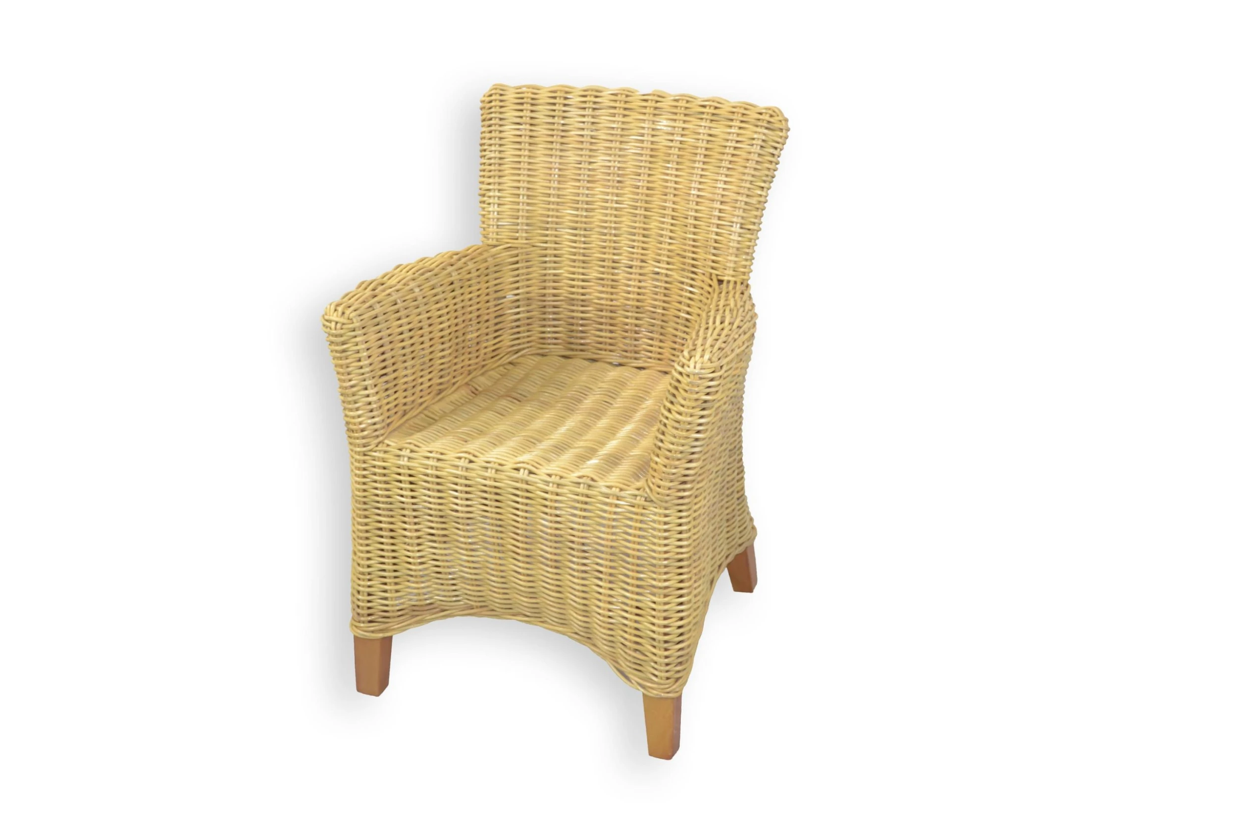 Moderner, bequemer Rattansessel mit Kubu-Rattan, naturfarben, aufwendig handgeflochten. Füße aus Massivholz Pinie, naturfarben gebeizt. Oberfläche vom Kubu-Rattan zusätzlich lackiert. Artikel wird montiert, per Spedition frei Bordsteinkante angeliefert. Maße vom Sessel ca. B. 65 x T. 64 x H. 91 cm. Armlehnenhöhe ca. 67 cm. Sitzhöhe ca. 46 cm, Sitzbreite ca. 43 und Sitztiefe ca. 46 cm.