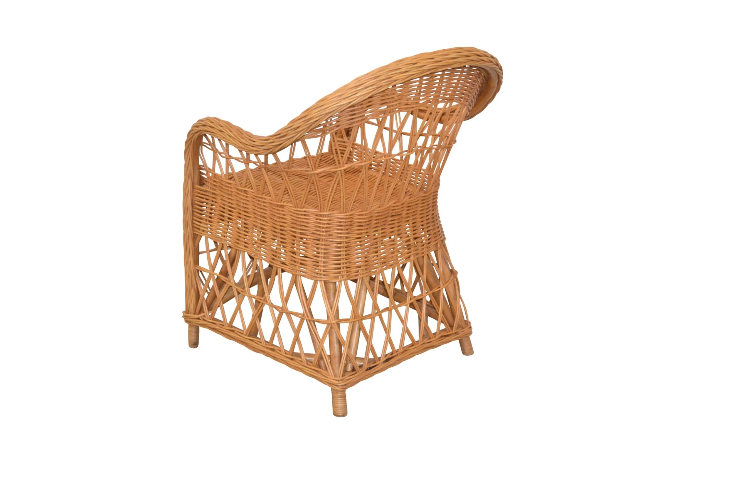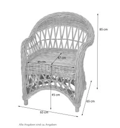 Moderner Rattansessel komplett aus Rattanrohr, handgeflochten. Lieferbar in 4 trendigen Farben: Kubu grau, lackiert // beigefarben gebeizt und lackiert // honigfarben gebeizt und lackiert oder uni weiß, lackiert. Optisch schön die Flechtung in der Schürze vom Rattansessel und im Mittelteil vom Rücken. Sessel wird montiert angeliefert. Maße ca. cm: (B/H/T) 65/85/65. Sitzhöhe ca. 45 cm, Sitzbreite ca. 45 cm, Sitztiefe ca. 47 cm.