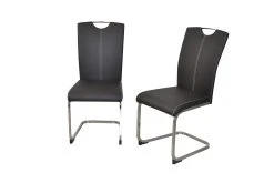 Moderner Schwingstuhl mit einem stabilen Stahlrohrgestell, trendig verchromt. Sitz und Rücken sind bequem schaumstoffgepolstert und mit einem attraktiven, pflegeleichten Kunstlederbezug (100% Polyurethan) bezogen. Rücken mittig sichtbar abgenäht, oben mit praktischer Griffmulde. Lieferung erfolgt zerlegt, mit Aufbauanleitung. Maße ca. cm: (B/H/T) 44/96,5/54,5. Sitzhöhe ca. 46 cm, Sitztiefe ca. 43,5 cm. Ergonomisch geformte Rückenlehne, Höhe ca. 54 cm. Alle Maße sind ca.-Angaben.