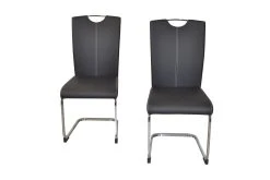 Moderner Schwingstuhl mit einem stabilen Stahlrohrgestell, trendig verchromt. Sitz und Rücken sind bequem schaumstoffgepolstert und mit einem attraktiven, pflegeleichten Kunstlederbezug (100% Polyurethan) bezogen. Rücken mittig sichtbar abgenäht, oben mit praktischer Griffmulde. Lieferung erfolgt zerlegt, mit Aufbauanleitung. Maße ca. cm: (B/H/T) 44/96,5/54,5. Sitzhöhe ca. 46 cm, Sitztiefe ca. 43,5 cm. Ergonomisch geformte Rückenlehne, Höhe ca. 54 cm. Alle Maße sind ca.-Angaben.