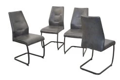 Morderner, bequemer Schwingstuhl im 4tlg.-Spar-Set mit einem stabilen Stahlrohrgestell, schwarz pulverbeschichtet. Sitz und Rücken sind komplett schaumstoffgepolstert und mit einem pflegeleichten Mikrofaserbezug (100% Polyester), im Vintage-Look, bezogen. Rücken mit attraktiver Quersteppung. Lieferung der Stühle erfolgt zur Selbstmontage, inklusive Aufbauanleitung. Maße je Stuhl ca. cm: (B/H/T) 43/93/59. Sitzhöhe ca. 47 cm, Sitztiefe ca. 43 cm.