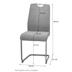 Hochwertiger Schwingstuhl-Set (4Stühle) mit einem Gestell aus Stahlrohr, schwarz pulverbeschichtet. Sitz und Rücken sind bequem schaumstoffgepolstert und mit einem attraktiven, pflegeleichten Stoffbezug (100% Polyester) bezogen. Belastbarkeit je Stuhl ca. 140 kg. Praktisch die eingearbeitete Griffmulde im Rücken. Lieferung der schönen Stühle erfolgt zur Selbstmontage, inklusive Aufbauanleitung. Maße ca. cm: (B/H/T) 44/99/61. Sitzhöhe ca. 47 cm, Sitztiefe ca. 43 cm.