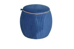 Moderner Sitzhocker mit Stauraum unter dem abnehmbaren Deckel. Stabiles Gestell teils aus Holz, teils aus MDF, komplett schaumstoffgepolstert und mit einem trendigen Samtbezug (100% Polyester) bezogen. Sitzfläche mit einen farblich abgesetzten Keder kombiniert. Innen mit einem schwarzen Stoffbezug (100% Polyster) ausgestattet. Stauraum-Innenmaße ca. Durchmesser 33 x Höhe 39 cm. Maße ca. cm: Durchmesser 49 x H. 46 cm. Artikel wird montiert angeliefert.