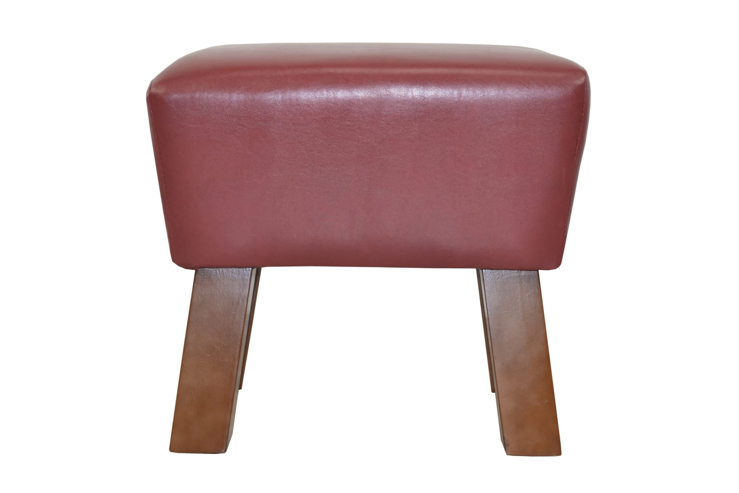 Dieser schöner, moderner Hocker mit seinem unifarbenen Kunstlederbezug (100% PU) und der komplett schaumstoffgepolsterten Sitzfläche wird Sie begeistern. Das stabile Gestell des Hockers ist aus Massivholz Pinie, braun gebeizt und lackiert. Der Sitzhocker ist ein Schmuckstück für jede Wohnung und läßt sich leicht kombinieren. In drei Farben lieferbar (schwarz, rot, braun). Farbe rot. Maße ca. cm: B. 45 x T. 34 x H. 42 cm.