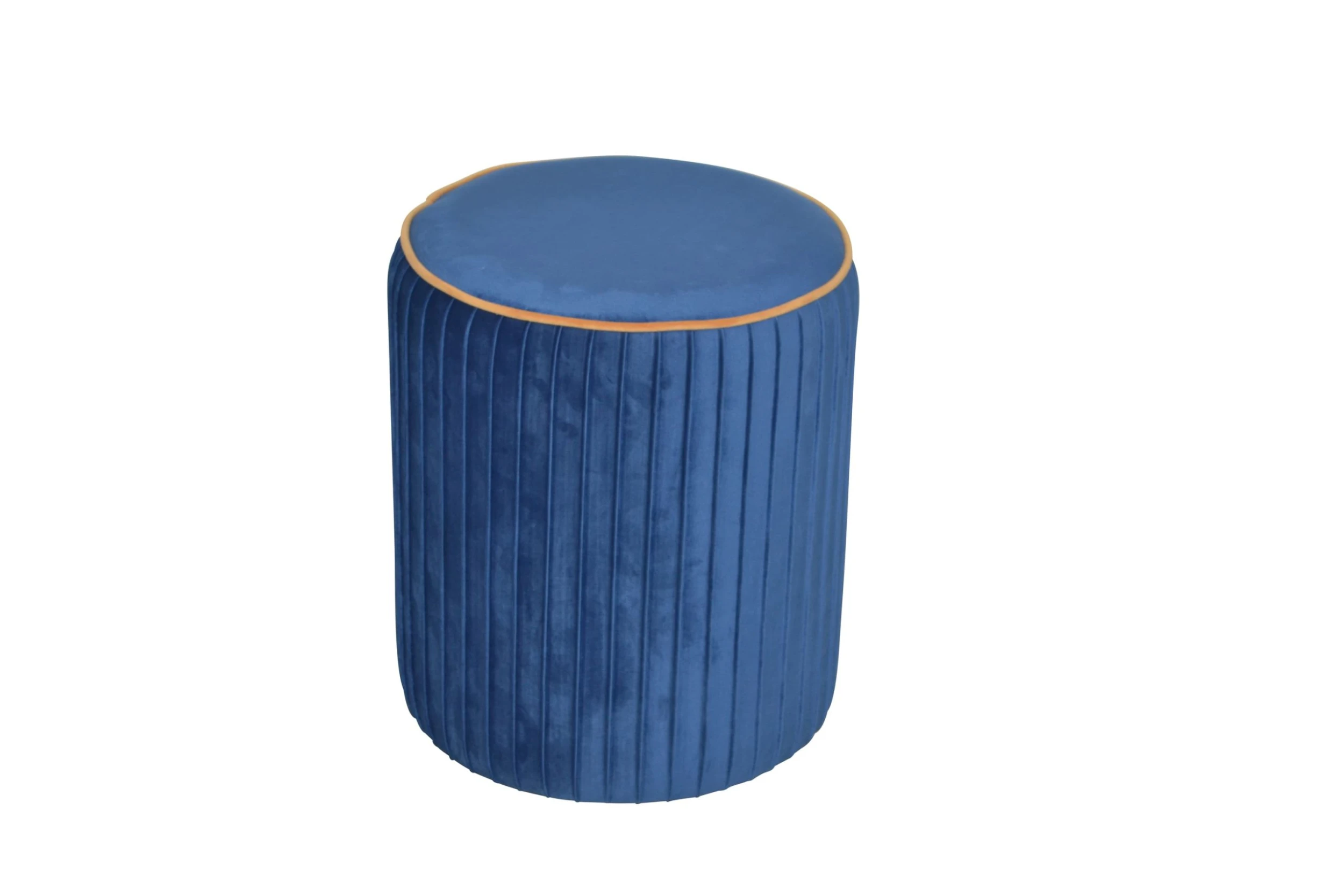 Moderner Sitzpouf mit einem stabilen Gestell, teils aus Holz, teils aus MDF, komplett schaumstoffgepolstert und mit einem trendigen Samtbezug (100% Polyester) bezogen, Korpus aufwendig längsseitig abgesteppt, Sitzfläche glatt bezogen und zusätzlich mit einen farblich abgesetzten Keder kombiniert. Maße ca. cm: Durchmesser 38 x H. 46 cm. Artikel wird montiert angeliefert.