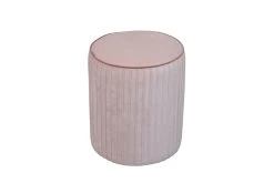 Moderner Sitzpouf mit einem stabilen Gestell, teils aus Holz, teils aus MDF, komplett schaumstoffgepolstert und mit einem trendigen Samtbezug (100% Polyester) bezogen, Korpus aufwendig längsseitig abgesteppt, Sitzfläche glatt bezogen und zusätzlich mit einen farblich abgesetzten Keder kombiniert. Maße ca. cm: Durchmesser 38 x H. 46 cm. Artikel wird montiert angeliefert.