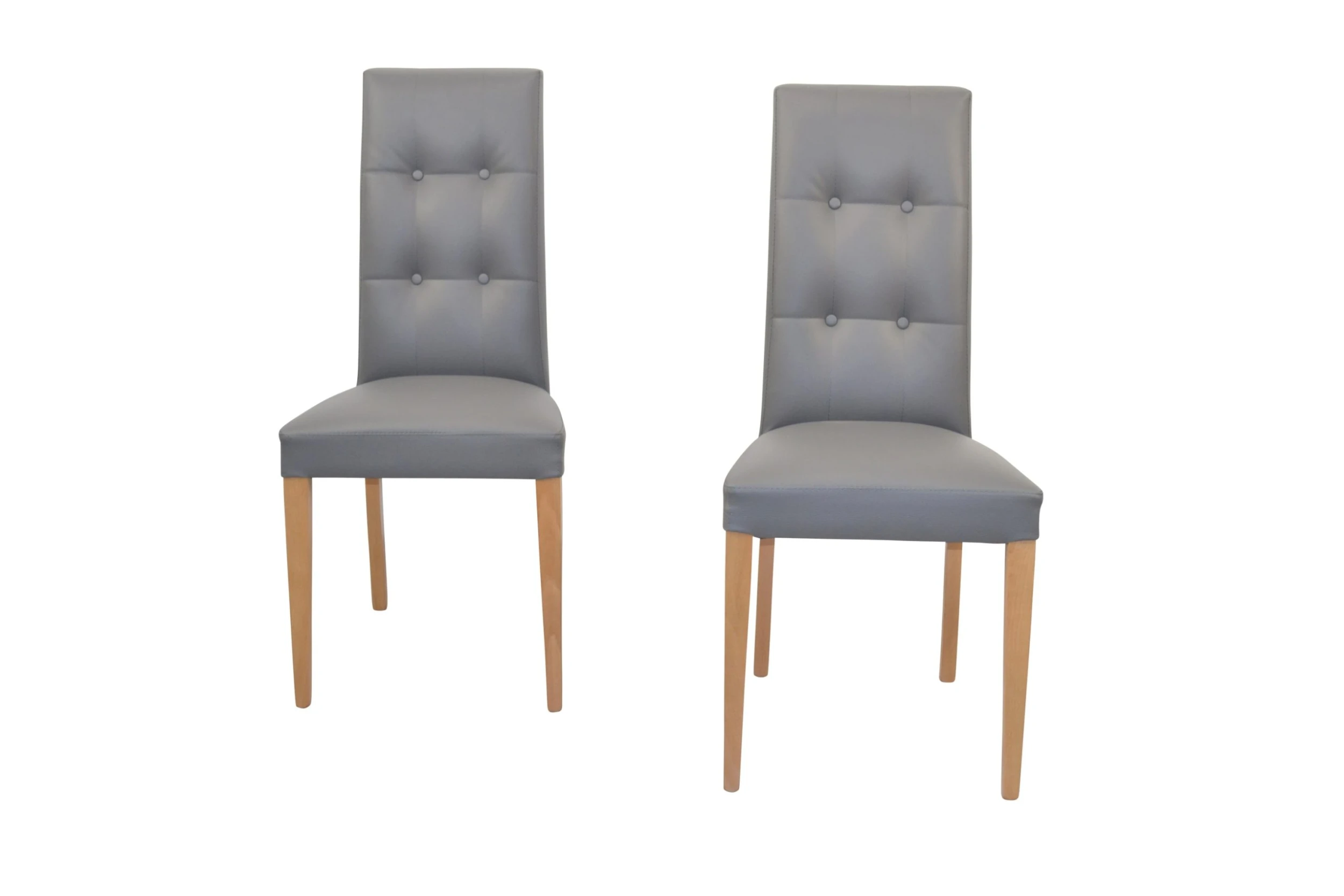 Die vier Polsterstühle haben ein stabiles Gestell aus Massivholz Buche, eichefarben gebeizt und lackiert. Sitz und Rücken sind bequem schaumstoffgepolstert und mit einem Kunstlederbezug (100% Polyvinylchlorid), bezogen. Belastbarkeit je Stuhl ca. 115 kg.