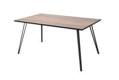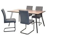Moderne Essgruppe bestehend aus einen großen Esstisch und 4 bequemen Stühlen. Esstisch mit Beinen aus Metall, schwarz pulverbeschichtet. Die Tischplatte 160×90 cm ist aus Holzwerkstoff (Spanplatte) gefertigt und mit einem trendigen Melamin-Holzdekor, Oldwood schwarz, beschichtet. Stühle mit einem Stahlrohrgestell, schwarz pulverbeschichtet, Sitz und Rücken sind schaumstoffgepolstert und mit einem strapazierfähigen Webstoffbezug (100% Polyester) bezogen. Esstisch und Stühle werden zur Selbstmontage, inklusive Aufbauanleitung angeliefert. Maße ca. cm: Esstisch (B/H/T) 160/76/90. Stuhl (B/H/T) 43/93/55. Sitzhöhe ca. 48 cm, Sitztiefe ca. 44 cm.