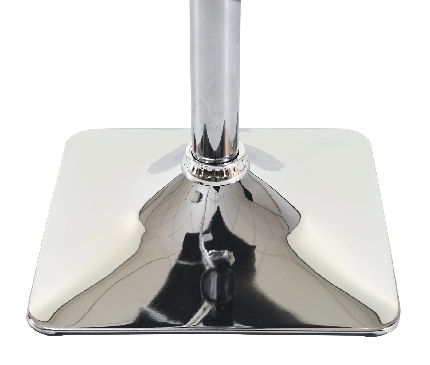 – Fußteller und Gestell wählbar: gebürsteter oder verchromter Stahl