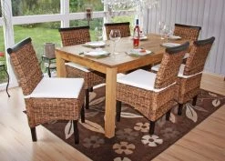 Jeder unserer Esszimmerstühle aus Bananengeflecht, einem nachwachsenden, ökologischen Rohstoff, ist ein individuelles Meisterwerk der besten Designerin weltweit – Mutter Natur. Oft kopiert, doch nie erreicht – kein künstlicher Werkstoff wird jemals die natürliche Schönheit eines Produkts aus organischem Material erreichen können.