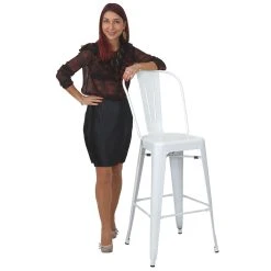 Dieser schicke Barhocker sticht durch seine extra hohe Rückenlehne hervor, die zusammen mit der bequemen Fußstütze für perfekten Sitzkomfort auch über längere Zeit sorgt. Unter der Sitzfläche befinden sich für zusätzliche Stabilität Querstreben. Zudem ist der Barhocker durch seine pulverbeschichtete Oberfläche sehr pflegeleicht und kann mühelos mit einem feuchten Tuch gereinigt werden.