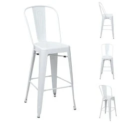 Dieser schicke Barhocker sticht durch seine extra hohe Rückenlehne hervor, die zusammen mit der bequemen Fußstütze für perfekten Sitzkomfort auch über längere Zeit sorgt. Unter der Sitzfläche befinden sich für zusätzliche Stabilität Querstreben. Zudem ist der Barhocker durch seine pulverbeschichtete Oberfläche sehr pflegeleicht und kann mühelos mit einem feuchten Tuch gereinigt werden.