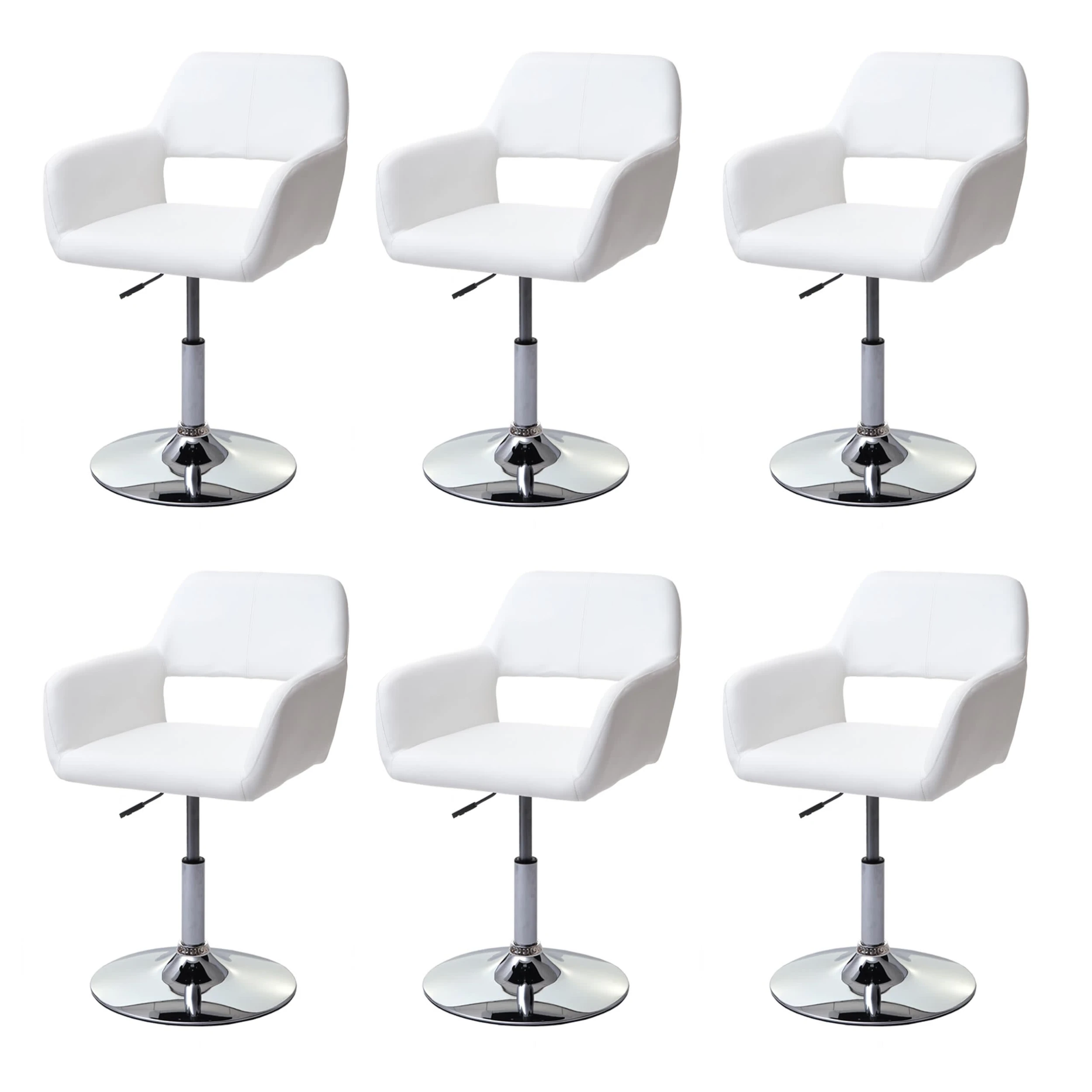 Diese Stühle erfreuen durch tolle Optik und gute Verarbeitung. Stabil, schick und im wirkungsvollen Retro-Stil versprüht diese Stuhlserie schlichte Eleganz. Edles Design und hoher Sitzkomfort machen diese Stühle zum Erlebnis. Der verchromte zylinderförmige Fuß bietet einen sicheren Stand und rundet das hochwertige Design perfekt ab. Um 360° drehbar und höhenverstellbar, erfüllen diese Esszimmerstühle sämtliche Anforderungen und wird Ihnen lange Freude bereiten. Die vielseitigen Kunstlederstühle passen hervorragend in den Wohnbereich, die Küche und das Esszimmer und repräsentiert dabei ein individuelles Wohngefühl.