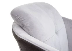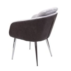 Die Materialkombination von Samt und Kunstleder verleiht diesem Stuhl ein edles Design, ebenso wie die Farbabstimmung zwischen dem hellen und dem dunklen Grau. Dieser Stuhl ist eine bequeme und stilvolle Sitzgelegenheit für den täglichen Gebrauch, durch die Kombination der beiden unterschiedlichen Materialien wird der Lehnstuhl zum Blickfang in Ihrem Esszimmer. Dank der verchromten Füße lässt sich der Stuhl auch mit vielerlei unterschiedlichen Tischen kombinieren.