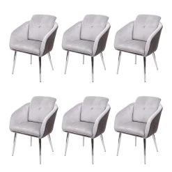 Die Materialkombination von Samt und Kunstleder verleiht diesem Stuhl ein edles Design, ebenso wie die Farbabstimmung zwischen dem hellen und dem dunklen Grau. Dieser Stuhl ist eine bequeme und stilvolle Sitzgelegenheit für den täglichen Gebrauch, durch die Kombination der beiden unterschiedlichen Materialien wird der Lehnstuhl zum Blickfang in Ihrem Esszimmer. Dank der verchromten Füße lässt sich der Stuhl auch mit vielerlei unterschiedlichen Tischen kombinieren.