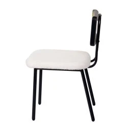 Dieser Stuhl zeichnet sich durch seinen besonderen Bouclé Bezug aus. Bouclé ist ein grob strukturiertes Gewebe, das aus Effektgarnen hergestellt wird und sorgt somit für ein besonders gemütliches Sitzgefühl.