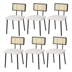 – Dieser Wohnzimmerstuhl zeichnet sich durch seinen schicken Retro-Look aus und ist in jedem Raum ein echter Hingucker. Die Materialkombination aus Geflecht und dem Bouclé Bezug runden die Optik des Polsterstuhls bestens ab und lassen ihn edel aussehen.