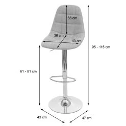 Der Barhocker ist um 360° drehbar und lässt sich durch die Gasdruckfeder mühelos in der Höhe verstellen. Durch die stabile Fußablage wird der Sitzkomfort perfekt, so dass man auch über längere Zeit bequem und ohne Probleme in dem Barhocker sitzen kann.