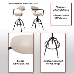 – Dieser Barhocker im angesagten Industrie-Style besticht durch sein auffälliges Design und die schöne Polsterung im Vintage-Look. Die Materialkombination aus Kunstleder und Metall rundet das Erscheinungsbild des Barhockers ab.