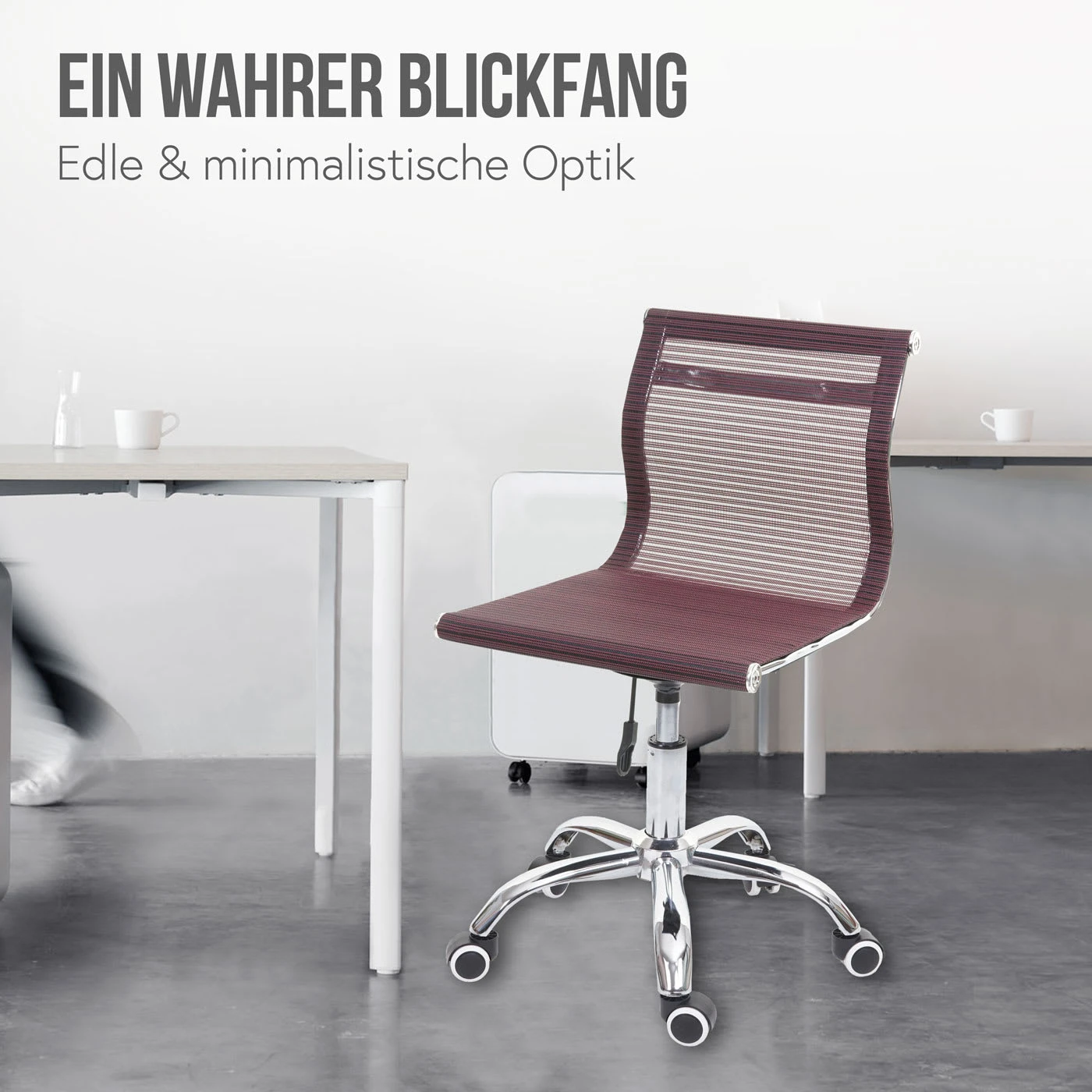 Dieser schlicht gehaltene, aber dennoch moderne Schreibtischstuhl passt in nahezu jedes Büro. Das Netz der Sitz- und Rückenfläche sorgt für eine gute Luftzirkulation, auch an heißen Sommertagen kommen Sie nicht ins Schwitzen. Die Netzbespannung passt sich zudem optimal an Ihren Rücken an uns sorgt somit für ein bequemes Sitzen, auch wenn es mal ein langer Arbeitstag wird. An der Rückseite dieses Drehstuhls befindet sich ein praktischer Griff. So können Sie den Bürostuhl im Handumdrehen an die gewünschte Stelle schieben.