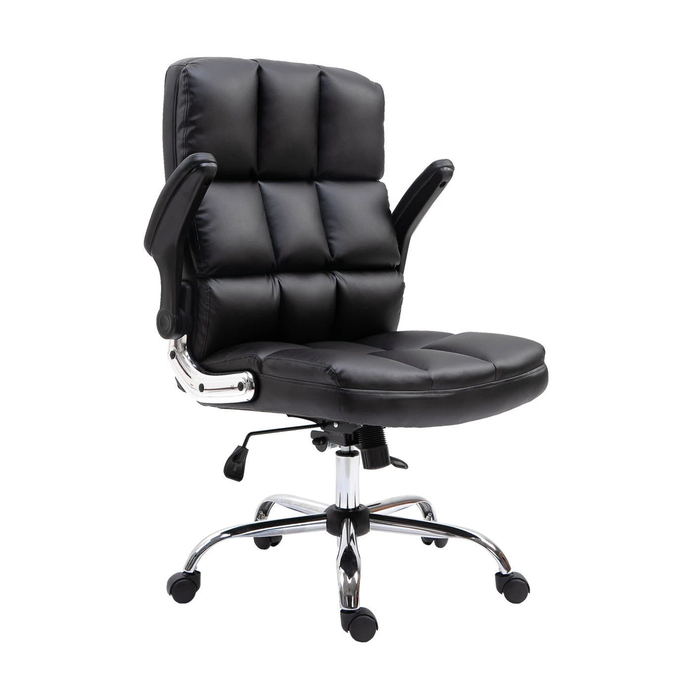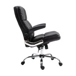 Dieser Chefsessel im ausgefallenen Look ist in Ihrem Arbeitszimmer ein echter Blickfang. Mit seinem stilvollen Design und der tollen Farbgebung des pflegeleichten Kunstleders bringt der Stuhl Gemütlichkeit in Ihre Räumlichkeiten. Abgerundet wird das Gesamtbild durch das verchromte Fußkreuz, das zusätzlich Eleganz im Erscheinungsbild schafft.