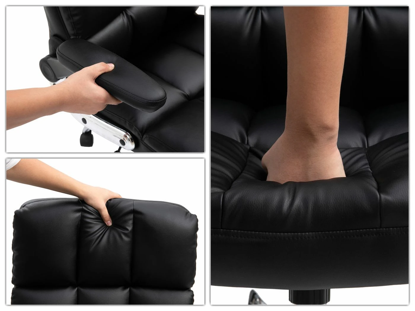 – Der schicke Computerstuhl ist um 360 Grad drehbar und bietet einen sicheren Stand. Auch über einen längeren Zeitraum hinweg sorgt der Bürostuhl durch seine besonders dicke Polsterung für einen hohen Sitzkomfort und lässt keine Wünsche offen.