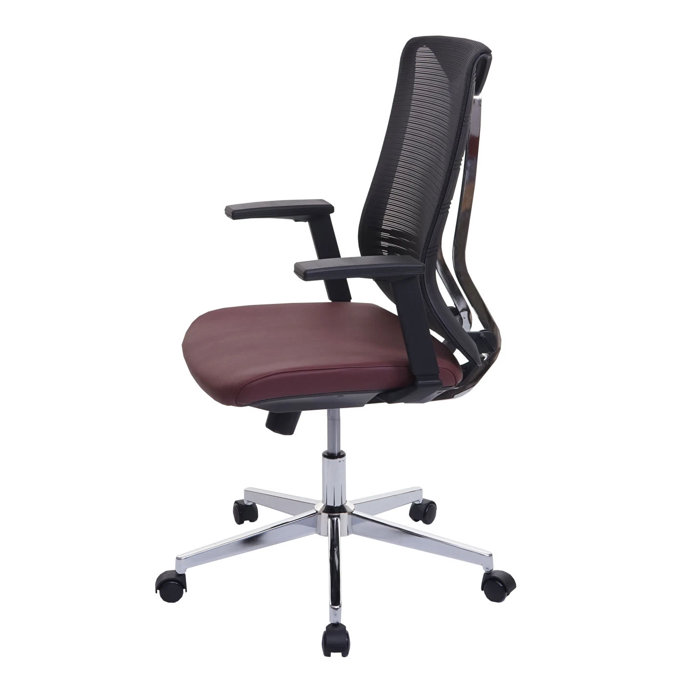 Dieser Bürostuhl in modernem Design ist nicht nur etwas fürs Auge, sondern erfüllt höchste Ansprüche in Sachen Komfort und Stabilität. Die zahlreichen Funktionen sorgen für einen ergonomischen Sitzkomfort: Die Armlehnen können in der Höhe in sieben verschiedenen Positionen fixiert werden und die Rückenlehne lässt sich durch die Wippmechanik ganz einfach an Ihre Sitzposition anpassen. Die Netzbespannung der Rückenlehne sorgt für eine optimale Luftzirkulation, sodass Sie auch im Sommer nicht schwitzen werden und immer ein gutes Gefühl haben. Der Schreibtischsessel ist um 360° drehbar und lässt sich durch die Gasdruckfeder mühelos in der Höhe verstellen. Dank der bequemen Sitzpolsterung ist ein entspanntes Arbeiten über viele Stunden hinweg garantiert. Abgerundet wird das Gesamtbild durch das stabile Fußkreuz, das noch etwas zusätzliche Eleganz im Erscheinungsbild schafft.