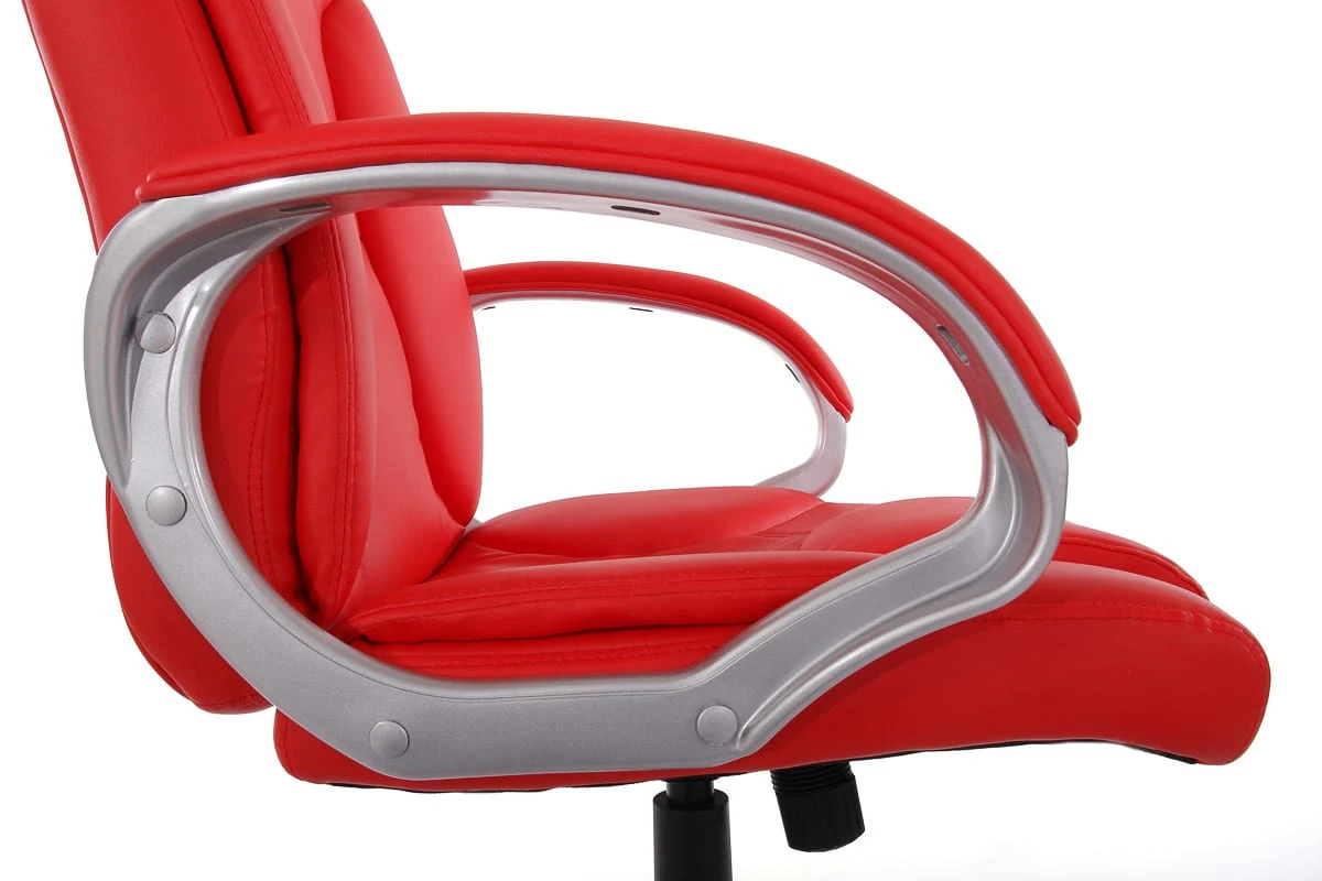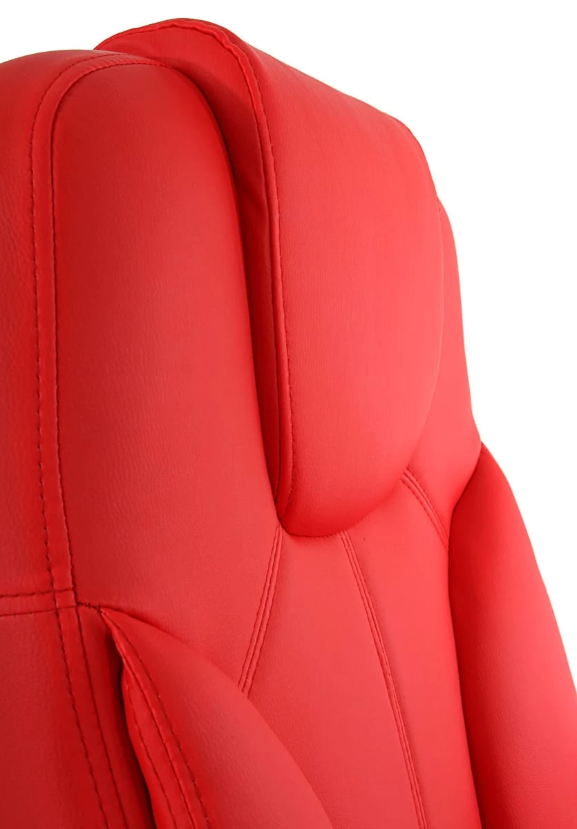 Dieser extravagante Chefsessel in topmodernem Design, ist nicht nur etwas fürs Auge, sondern erfüllt höchste Ansprüche in Sachen Komfort. Die jeweils zusätzlich aufgelegte Kopfstütze sowie das Unterschenkel-Polster bieten nicht nur einen (im wahrsten Sinne) hervorragenden optischen Akzent – sie sorgen auch für ein höchst angenehmes Sitzgefühl, welches auch bei längerer Nutzung Bestand hat. Ebenfalls bemerkenswert sind die besonders breiten und gepolsterten Armlehnen, die für hohen Sitz- und Bildschirm- Arbeitskomfort sorgen. Das ungewöhnlich große Fußkreuz (im Vergleich knapp 10% größer), sorgt für einen absolut sicheren Stand.