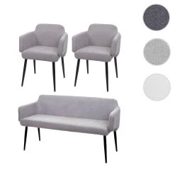 – Diese moderne Essgruppe aus zwei Stühlen und einer Sitzbank überzeugt mit ihrem hohen Sitzkomfort dank der breiten und gepolsterten Sitz- und Rückenflächen. Egal ob Esszimmer oder Küche – diese Sitzmöbel bringen Gemütlichkeit in all Ihre Räumlichkeiten.