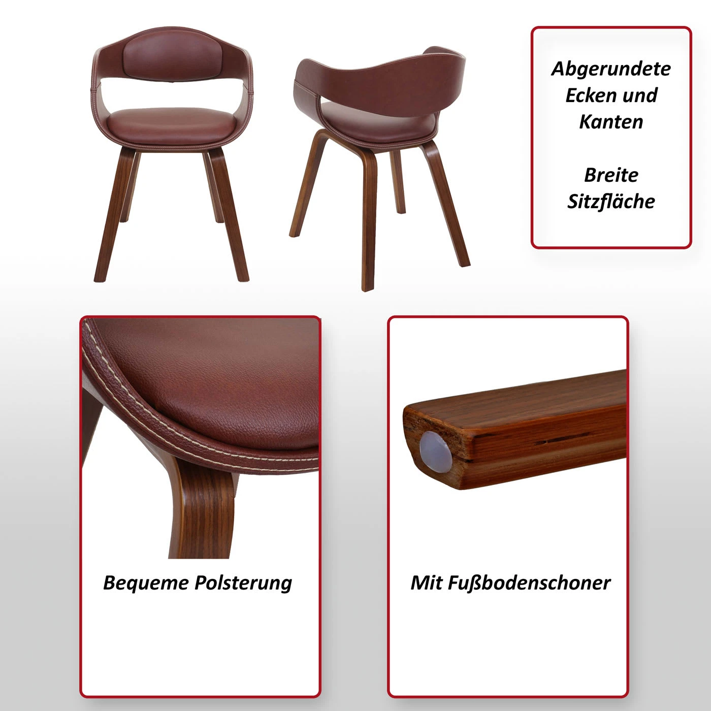 Dieser extravagante Esszimmerstuhl verleiht jedem Ambiente einen edlen Touch. Besonders sticht einem die tolle Optik des gemaserten Bugholzes ins Auge, die perfekt mit der schicken Polsterung aus pflegeleichtem Kunstleder harmoniert. Mit seinem stilvollen Design bringt der Stuhl Gemütlichkeit in Ihre Räumlichkeiten und ist eine moderne sowie praktische Ergänzung. Durch die stabilen Stuhlbeine wird der Sitzkomfort perfekt, so dass man auch über längere Zeit bequem und ohne Probleme in dem Stuhl sitzen kann.