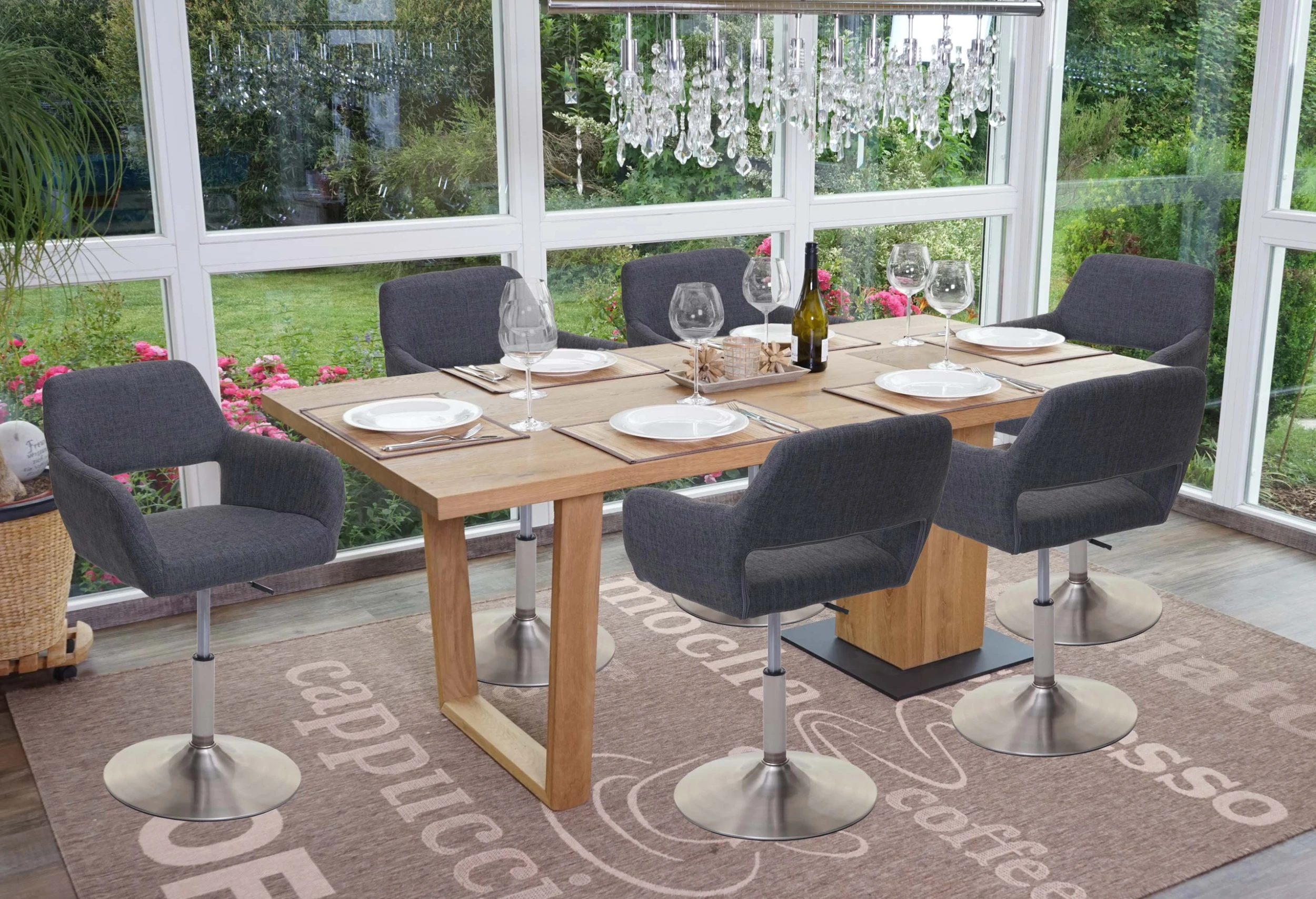 Dieser Stuhl erfreut durch tolle Optik und gute Verarbeitung. Stabil, schick und im wirkungsvollen Retro-Stil versprüht diese Stuhlserie schlichte Eleganz. Edles Design und hoher Sitzkomfort machen den Stuhl zum Erlebnis. Um 360° drehbar und höhenverstellbar, erfüllt dieser Esszimmerstuhl sämtliche Anforderungen und wird Ihnen lange Freude bereiten. Der vielseitige Texilstuhl passt hervorragend in den Wohnbereich, die Küche und das Esszimmer und repräsentiert dabei ein individuelles Wohngefühl.