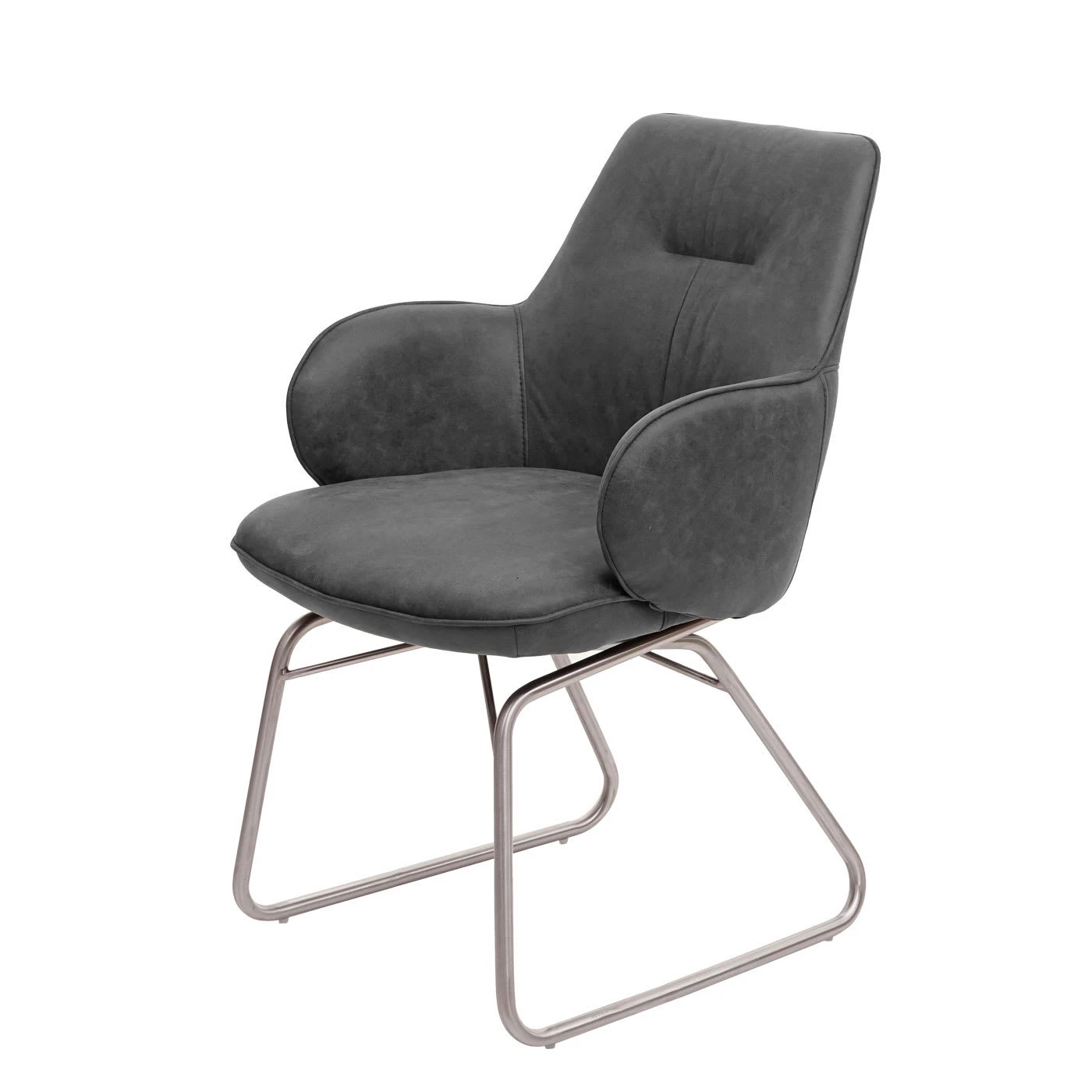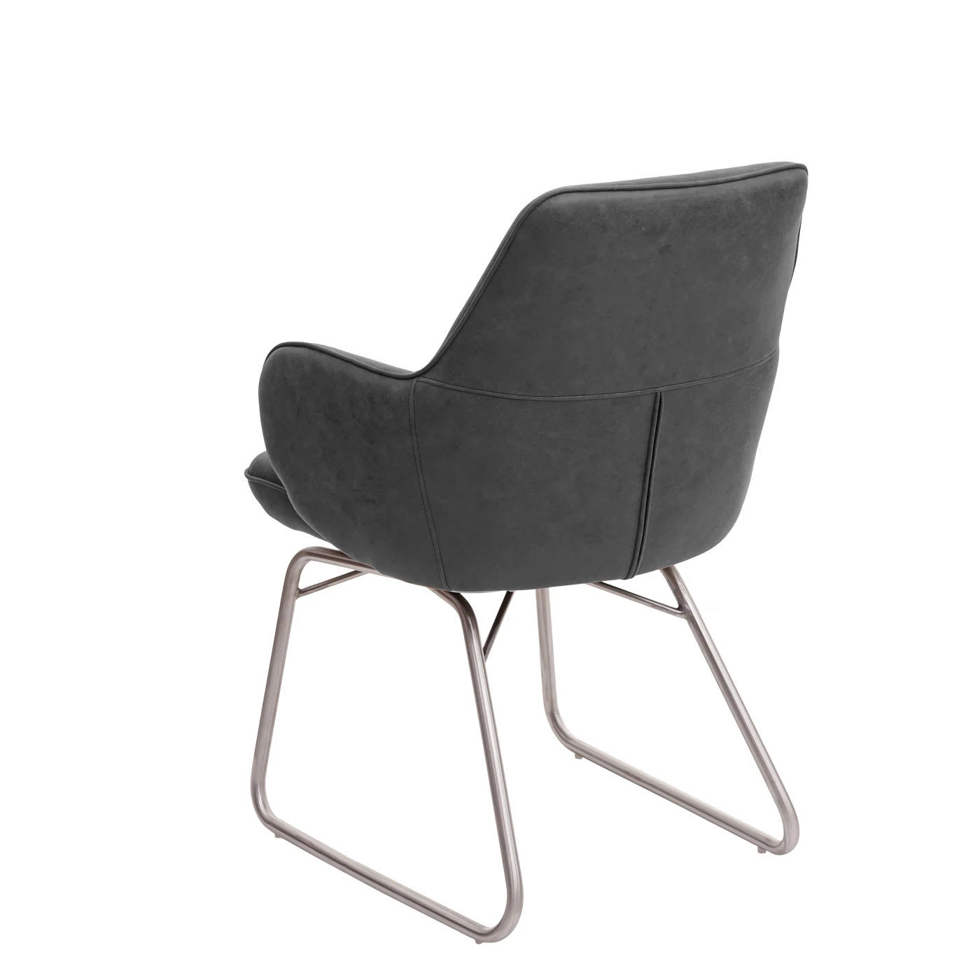 – Die Formgebung ist bei diesem Stuhl rund gehalten: das Gestell und alle Kanten sind abgerundet, sodass ein gleichmäßiges, schönes Bild entsteht. Durch die Ziernähte wird das Gesamtbild vollends abgerundet.