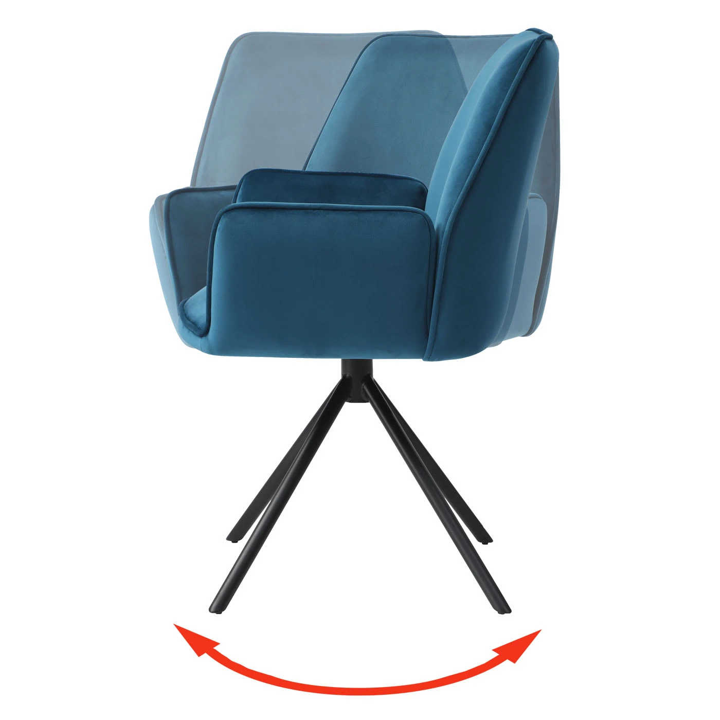 Modern und futuristisch – dieser Stuhl ist mit vielerlei Einrichtungsstilen kombinierbar. Dieser Stuhl lässt sich mittels eines leichtgängigen Kugellagers jeweils nach rechts und links um 90° drehen. Außerdem dreht der Stuhl automatisch wieder in die Ausgangsposition zurück, wenn man die Füße vom Boden hebt. Möchte man in der gedrehten Position bleiben, muss man die Füße am Boden lassen.