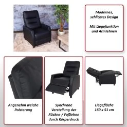Dieser Sessel ist durch sein zeitloses Design und die Relax-Funktion perfekt für Entspannung oder ein Schläfchen. Durch die Dicke der Polsterung ist dieser Sessel äußerst bequem – da bleiben keine Wünsche offen. Diese Sessel sind derart konstruiert, dass die Rückenlehne sowie die Fußstütze problemlos durch Gewichtsverlagerung aus der Liegeposition in die Sitzposition verstellt werden kann. Dabei lassen sich die beiden Flächen immer nur parallel verstellen. Aufgrund seines einfach gehaltenen Stils ist dieser Lesesessel passend zu jedem Einrichtungsstil und eine super Ergänzung für ihr Wohnzimmer, Schlafzimmer oder Heimkino.