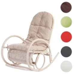 Die wunderschön geschwungenen Armlehnen unterstreichen den Retro-Look, den Schaukelstühle generell verbreiten, und macht dieses Produkt zu einem immer modernen Klassiker. Für langanhaltende Freude sorgt das stabile Holzgestell mit schönem Rattangeflecht, das den Bezugsstoff farblich bestens ergänzt. Dazu kommt noch die hochwertige und bequeme Textilauflage die zu stundenlangem Verweilen einlädt.