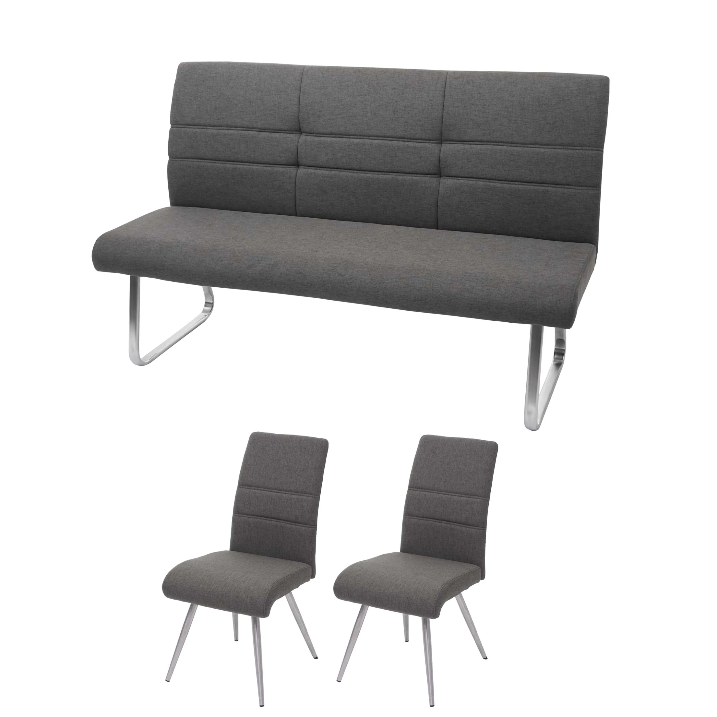 – Dieses moderne Set aus zwei Stühlen und einer Sitzbank überzeugt dank der breiten und gepolsterten Sitz- und Rückenflächen mit seinem hohen Sitzkomfort. Egal ob Esszimmer, Wohnzimmer oder Küche – diese Garnitur bringt Gemütlichkeit in all Ihre Räumlichkeiten.
