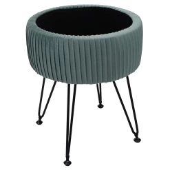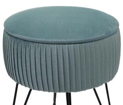 – Dieser Hocker in edler Samt-Optik ist nicht nur optisch ansprechend, sondern verbirgt unter dem abnehmbaren Deckel auch ein praktisches Staufach, in dem Kleinigkeiten schnell untergebracht werden können.