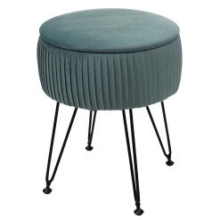 – Dieser Hocker in edler Samt-Optik ist nicht nur optisch ansprechend, sondern verbirgt unter dem abnehmbaren Deckel auch ein praktisches Staufach, in dem Kleinigkeiten schnell untergebracht werden können.
