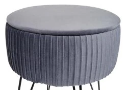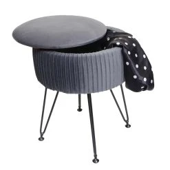 – Dieser Hocker in edler Samt-Optik ist nicht nur optisch ansprechend, sondern verbirgt unter dem abnehmbaren Deckel auch ein praktisches Staufach, in dem Kleinigkeiten schnell untergebracht werden können.