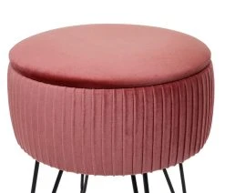 – Dieser Hocker in edler Samt-Optik ist nicht nur optisch ansprechend, sondern verbirgt unter dem abnehmbaren Deckel auch ein praktisches Staufach, in dem Kleinigkeiten schnell untergebracht werden können.
