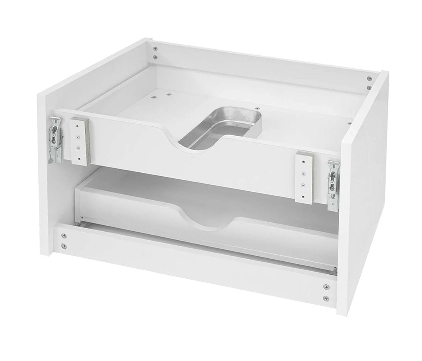 – Dieser Unterschrank überzeugt nicht nur mit seinem modernen Design, sondern bietet zudem jede Menge nützlichen Stauraum für Föhn, Zahnbürste oder Handtuch. Dabei nimmt er nicht viel Platz weg und besitzt außerdem eine Siphon-Aussparung.