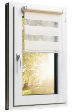 Das Balkontürrollo bietet Ihnen durch die zwei Stoffbahnen die Möglichkeit, entweder durch den transparenten Stoff in einer sehr hellen Räumlichkeit zu sitzen oder durch den verdunkelten Stoff das Tageslicht nach Wunsch zu reduzieren, sodass es sogar zu 100 % dunkel ist und keine Sicht nach innen und außen gibt. Dies können Sie mit dem stabilen Kettenzug nach Ihrem eigenen Wunsch variieren.