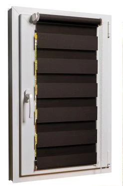 Das Fensterrollo bietet Ihnen durch die zwei Stoffbahnen die Möglichkeit, entweder durch den transparenten Stoff in einer sehr hellen Räumlichkeit zu sitzen oder durch den verdunkelten Stoff das Tageslicht nach Wunsch zu reduzieren, sodass es sogar zu 100 % dunkel ist und keine Sicht nach innen und außen gibt. Dies können Sie mit dem stabilen Kettenzug nach Ihren eigenen Wunsch variieren.