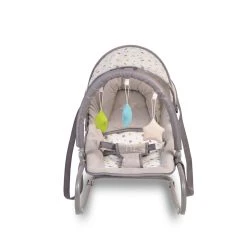 Die praktische und bequeme Babywippe Lulu aus dem Hause Moni ist bereits ab Geburt geeignet. Der angebrachte und verstellbare Spielbogen mit 3 Plüschfiguren animiert bereits die kleinsten zu ersten Greifübungen. Ihr Baby kann in der Wippe schlafen oder neugierig zuschauen, was Sie machen. Denn die Rückenlehne lässt sich in zwei verschiedene Positionen einstellen. Der 3-Punkt Sicherheitsgurt sowie das zusätzliche Kissen sorgen für ausreichende Sicherheit und Komfort. Für einen leichten Transport der Wippe sind seitlich praktische Tragehenkel angebracht.