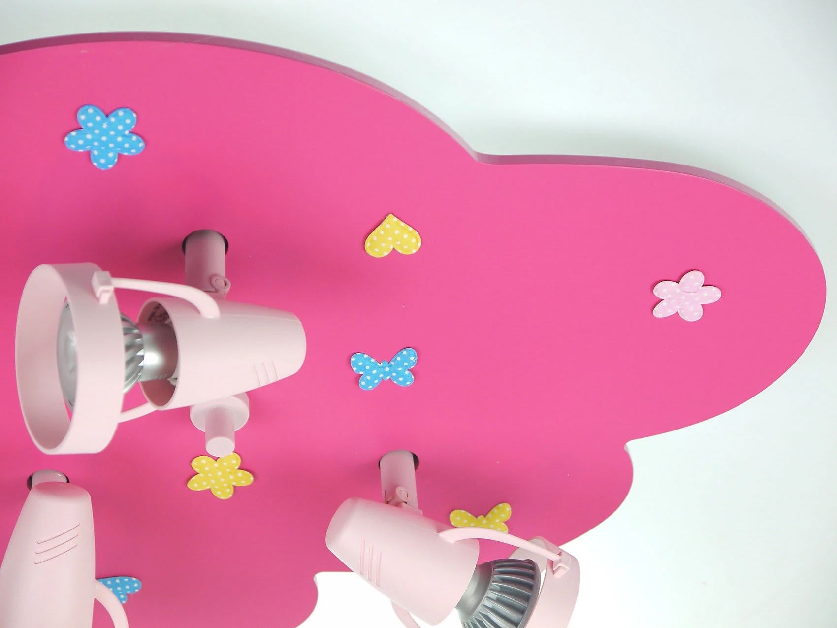 Die drei Strahler sind verstellbar und ermöglichen ein punktgenaues Ausleuchten des Kinderzimmers. So kann ein Spot auf den Schreibtisch, ein zweiter auf die Spielecke und ein dritter auf den Schrank oder ein Regal gerichtet werden.