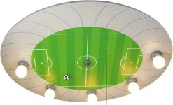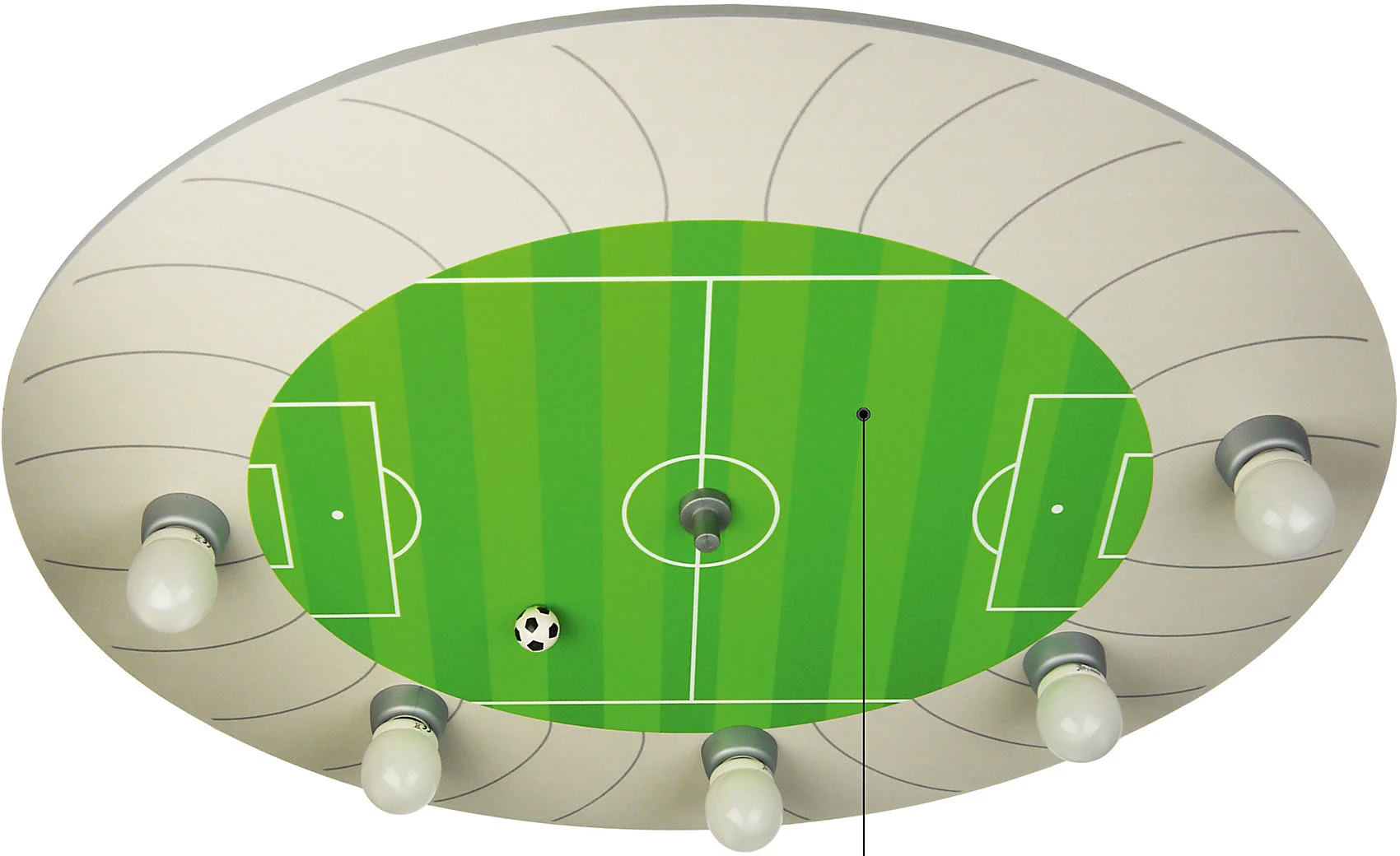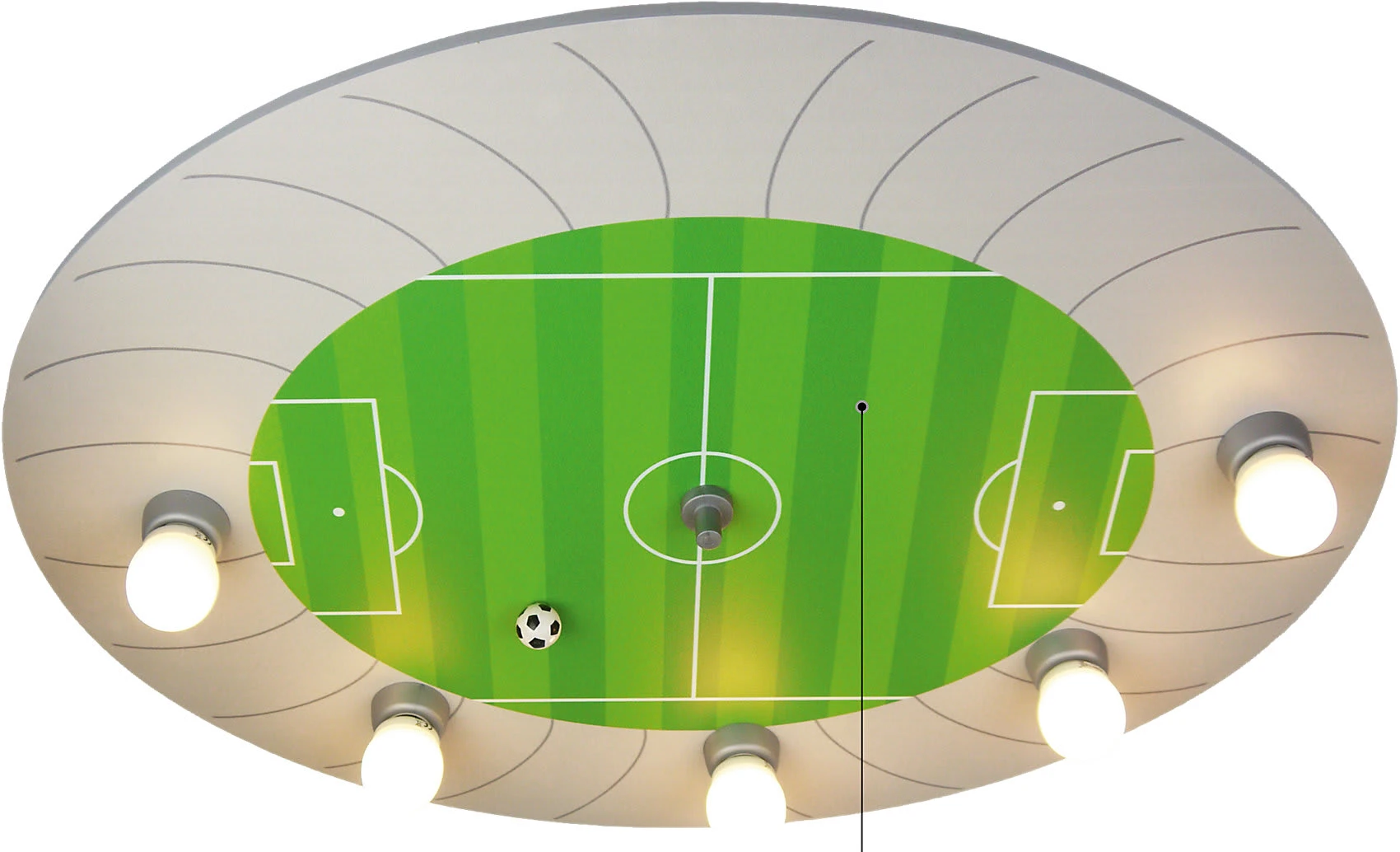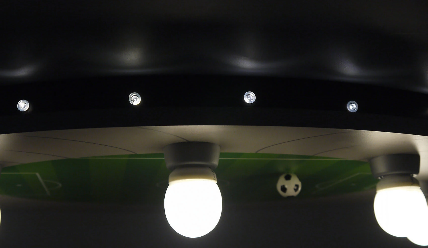 Sehr schöne Deckenleuchte mit Schlummerlichtfunktion. Über den Zugschalter lässt sich die Hauptbeleuchtung EIN + AUS schalten. Die Leuchte hat einen hochwertigen Aufdruck. Die Highlights der Lampe: dezente Nachtbeleuchtung mit 20 LED’s die das Stadion von der Rückseite beleuchten, eingebauter Zugschalter für LED Beleuchtung, geringer Stromverbrauch durch LED Technik,