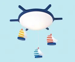 Für alle kleinen und großen Matrosen ein Highlight. Mit dieser Lampe kommt nordische Gemütlichkeit ins Kinderzimmer. Unter dem großen Steuerrad schweben drei süße Segelboote.