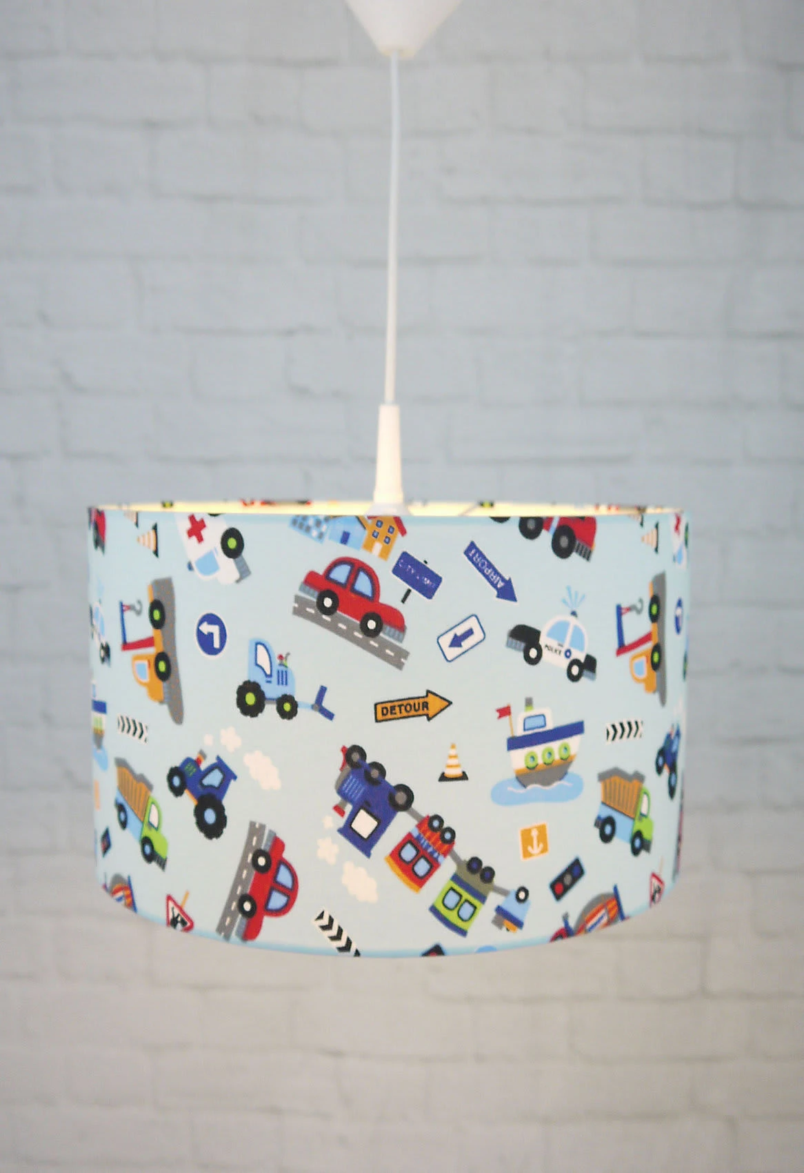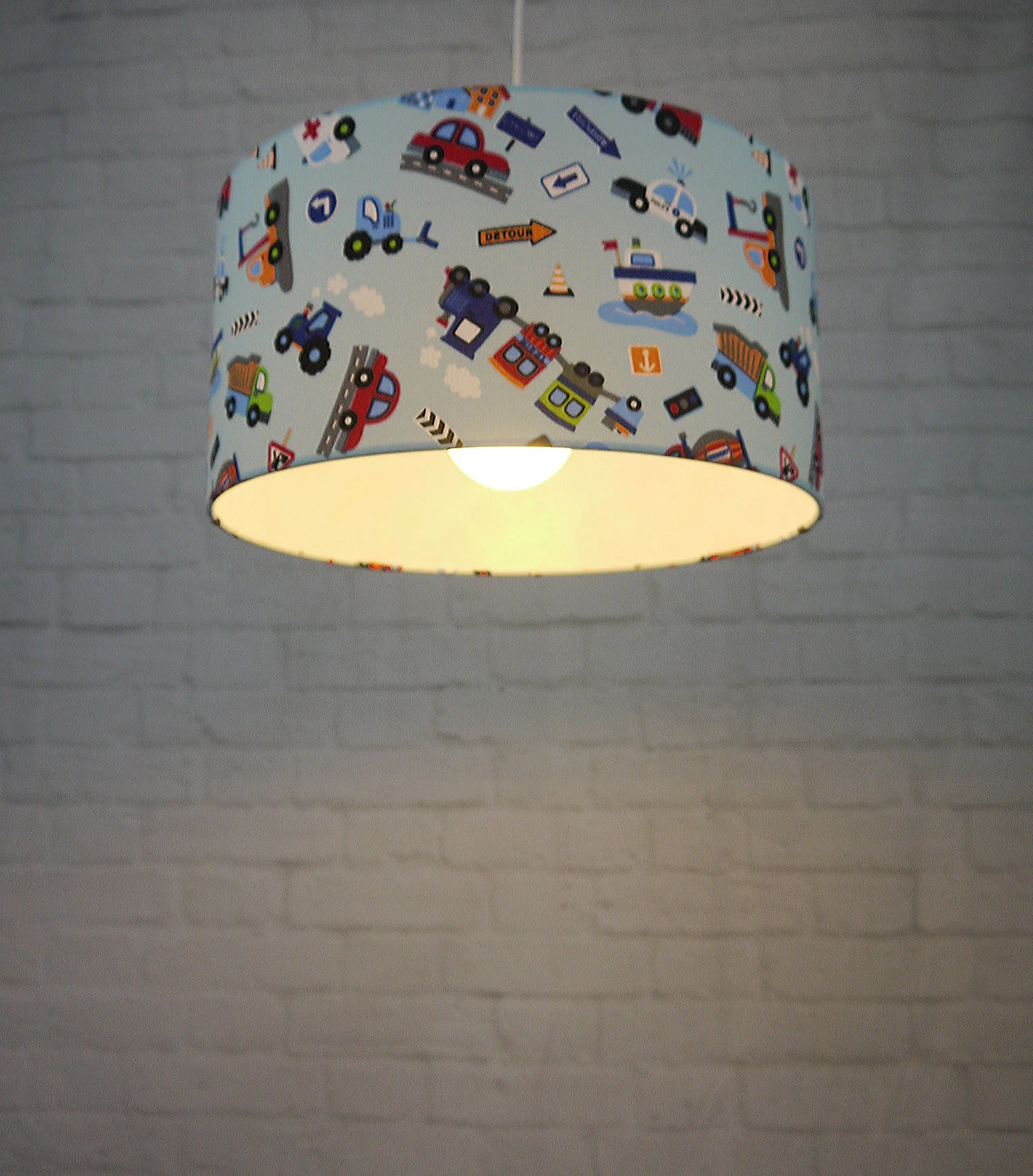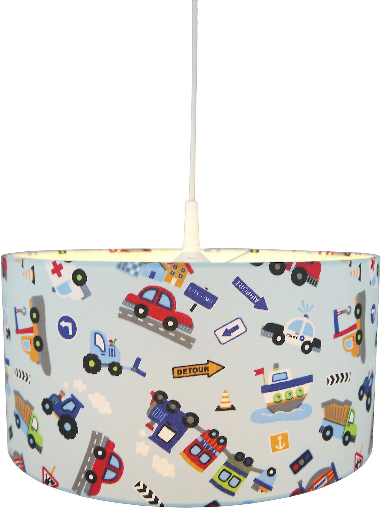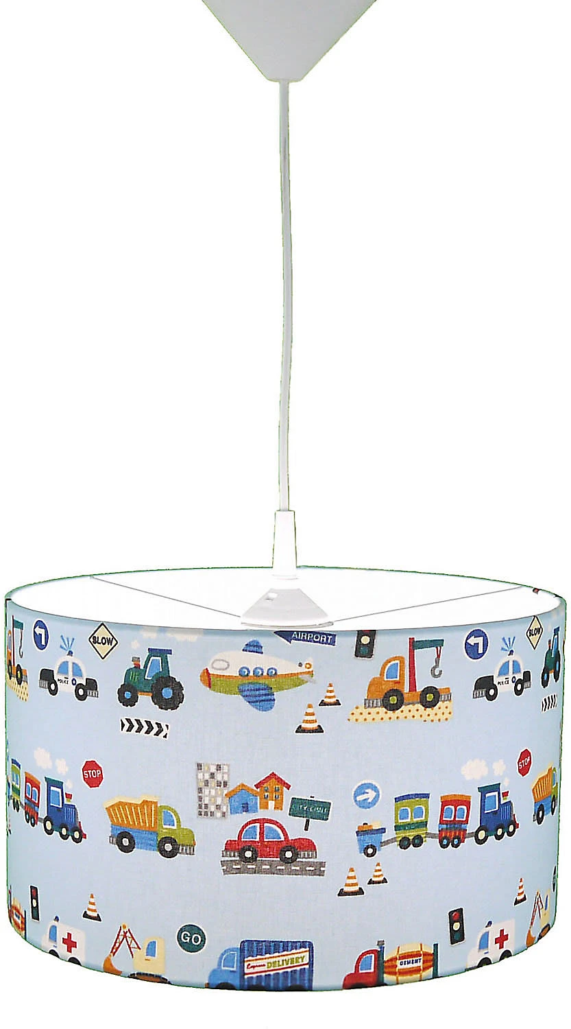 Mit süßen, spannenden Motiven zeigt sich diese Stoff-Pendelleuchte aus dem Hause NIERMANN. Die Leuchte sorgt für einen dezenten, farbenfrohen Akzent im Kinderzimmer.