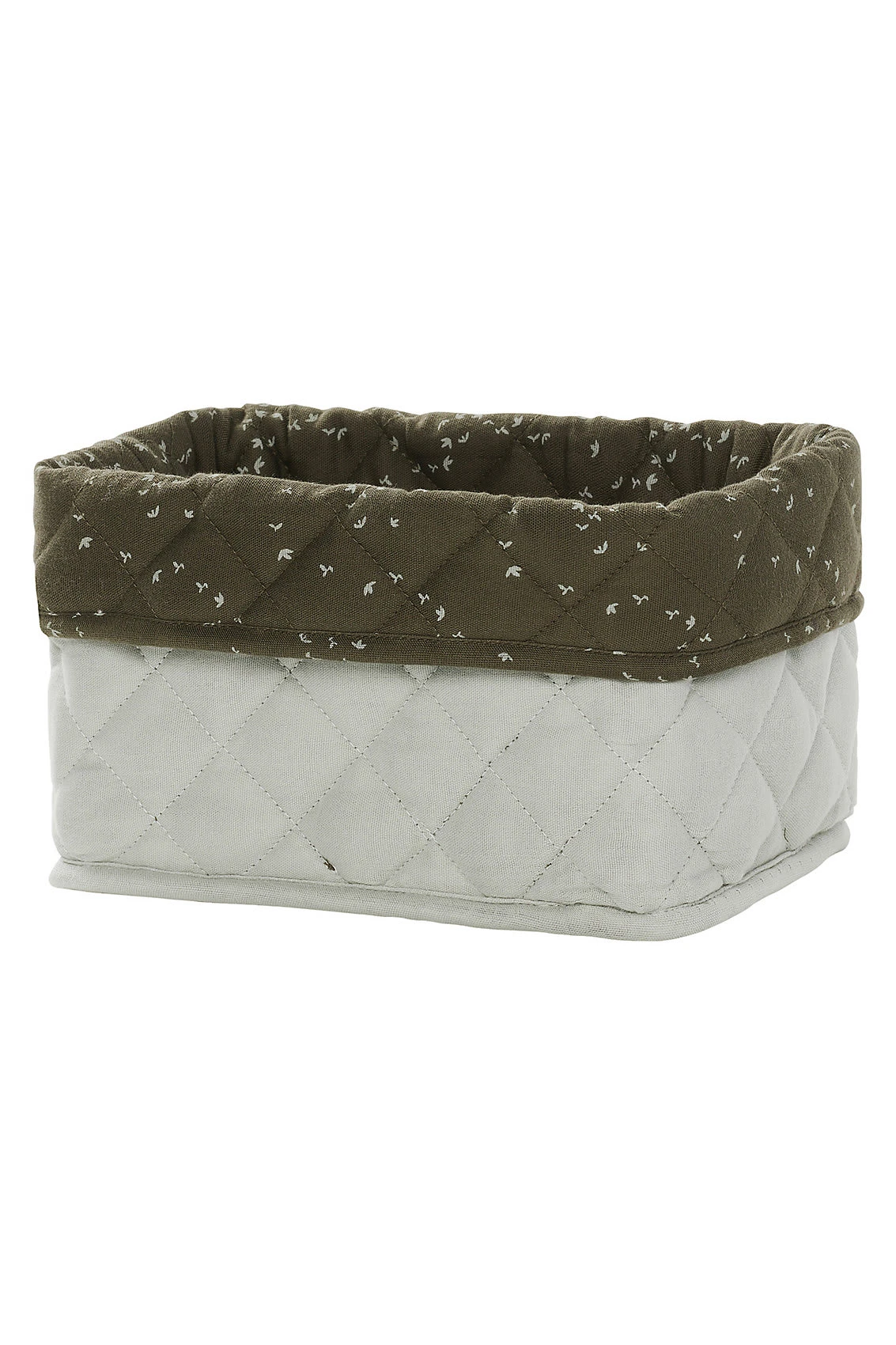 Von der Wundsalbe bis zur Nagelschere und vom Babyöl bis zur Haarlotion: Alles braucht einen festen Platz. Wir helfen Ihnen mit diesen praktischen doppelseitigen Körben, den Überblick zu behalten. Stellen Sie sie auf die Kommode oder hängen Sie sie in ein Regal im Kinderzimmer. Auch sehr praktisch für kleine Gegenstände wie Socken und Lätzchen. Wählen Sie den Print oder den unifarbenen Look?