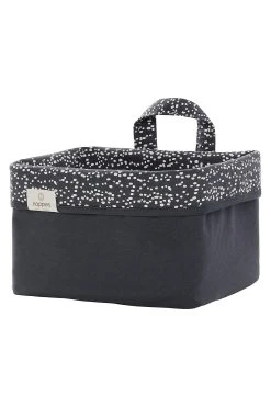 Von der Wundsalbe bis zur Nageschere und vom Babyöl bis zur Haarlotion – alles braucht einen festen Platz. Wir helfen Ihnen mit diesen praktischen doppelseitigen Körben, den Überblick zu behalten. Stellen Sie sie auf die Kommode oder hängen Sie sie daran, oder stellen Sie sie in ein Regal im Kinderzimmer. Auch sehr praktisch für Kleinkram wie Socken und Lätzchen.Größe M ist 23 cm x 15 cm x 18,5 cm hoch.